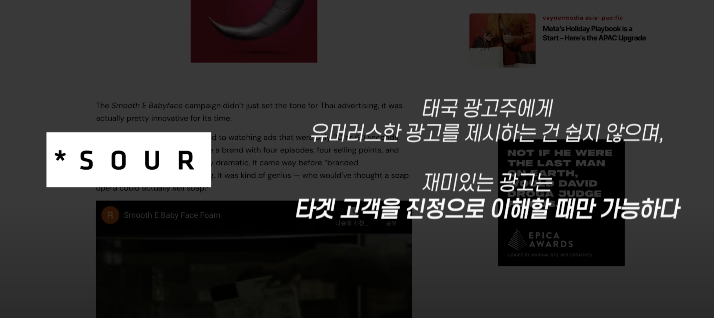 브랜딩 인 아시아가 진행한 인터뷰. 태국의 광고대행사 Sour Bangkok의 크리에이티브 디렉터 타마콘의 발언 내용을 보자면요.