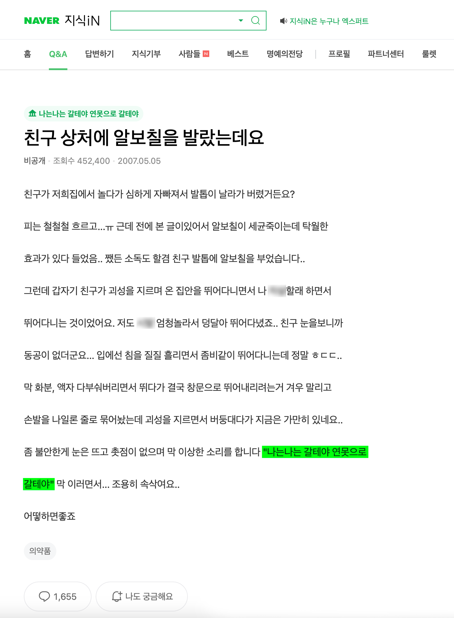 2007년 네이버 지식인에 올라온 질문에서 시작됐는데요. |