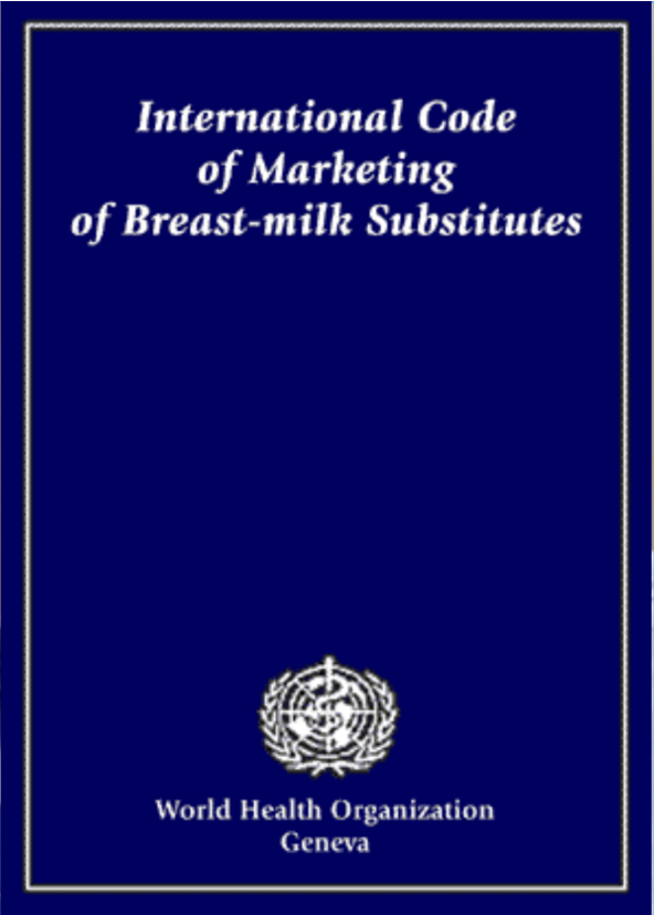 ์ ๊ดํ ๊ตญ์ ๊ท์ฝ(International Code of Marketing of Breast-milk Substitutes)ใ์ด ์ฑํ๋ฉ๋๋ค. |