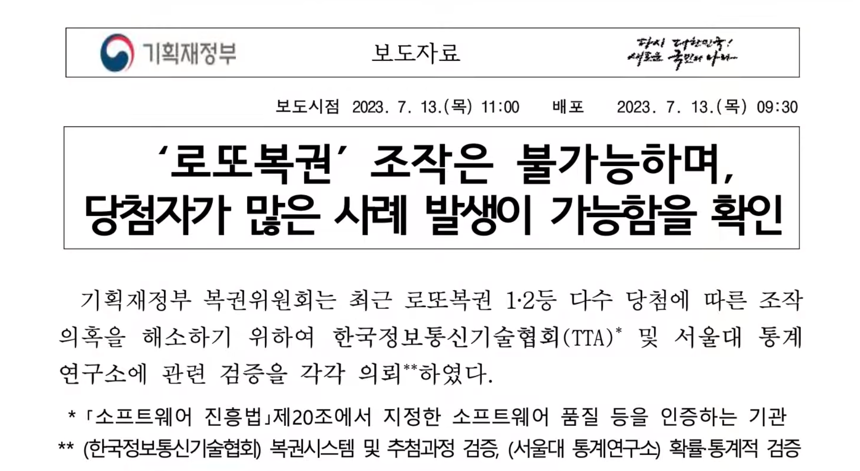 이런 의혹이 커지니, 아예 기재부 복권위원회에서 설명자료를 배포한 적이 있습니다. |
