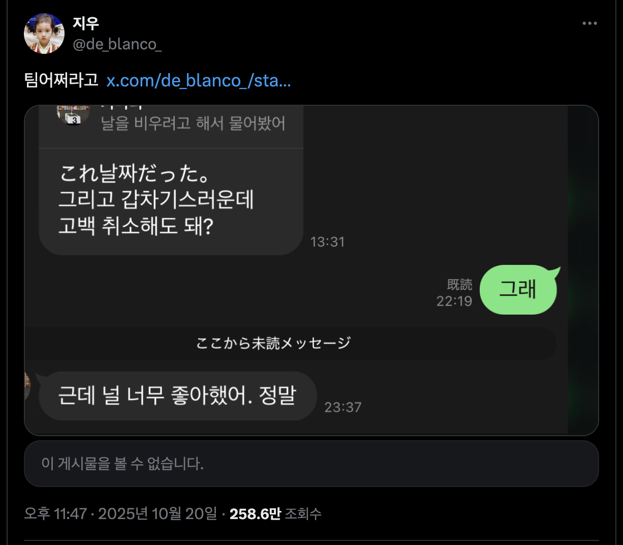 ์ธ๋จ์ด โ๊ฐ์ฐจ๊ธฐ์ค๋ฌ์ด๋ฐ ๊ณ ๋ฐฑ ์ทจ์ํด๋ ๋ผ?โ ๋ผ๊ณ ํ ๊ฑฐ ์์. ๐ตโ๐ซ