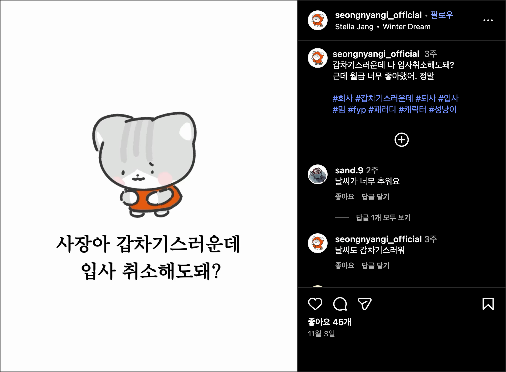 โ ์ธ์คํ๊ทธ๋จ โ@seongnyangi_officialโ |
