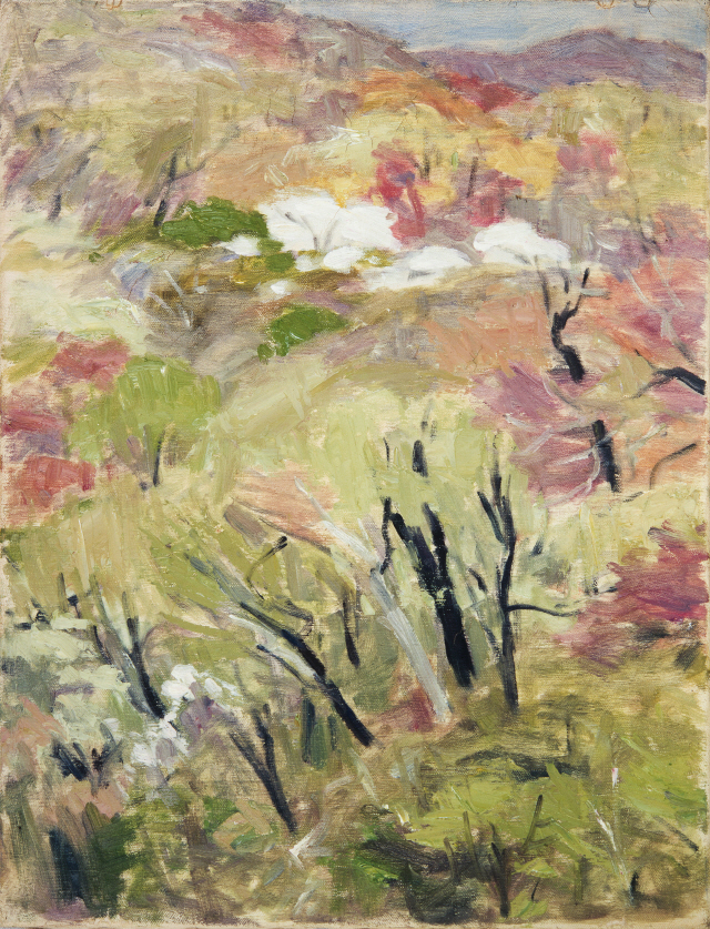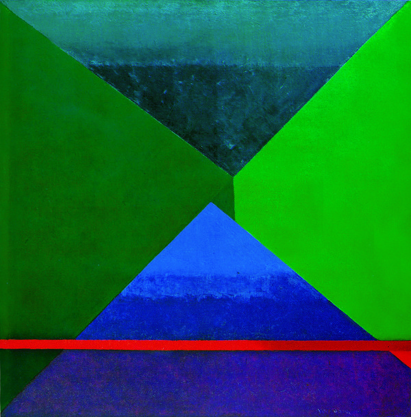 병오년 새해를 맞아 국립현대미술관이 꺼내든 키워드는 ‘추운 겨울 거리, 예술로 전하는 온기’입니다. 추운 계절의 도로 위에서 잠깐 스쳐 가는 이미지 하나라도 시민들의 지친 일상에 작은 위안이 되었으면 한다는 취지죠. 그래서 이번에 새로 송출되는 작품들은 공통적으로 ‘따뜻한 색감’을 중심으로 선별됐습니다. 선정된 작품은 모두 여섯 점입니다. 한국 추상미술의 선구자 유영국의 〈산〉, 단순한 형태 안에 자연의 리듬과 에너지를 담아낸 작품입니다. |