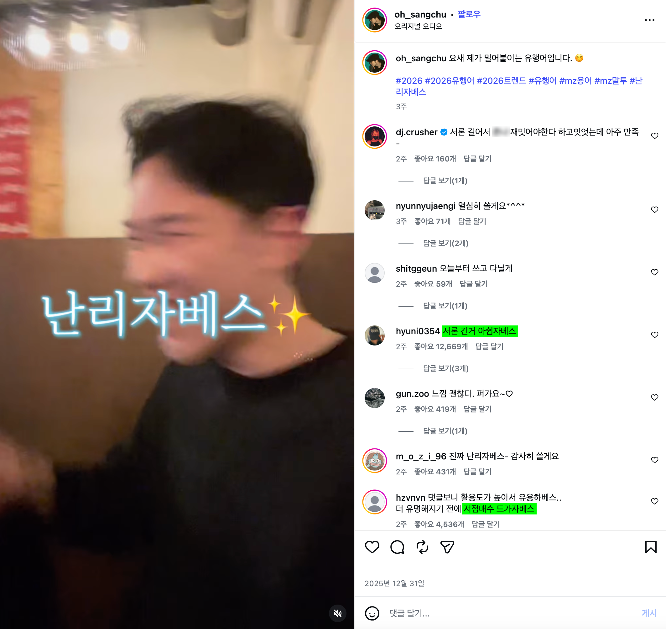 인스타그램 유저 @oh_sangchu 님이 2026년을 강타할 거라며